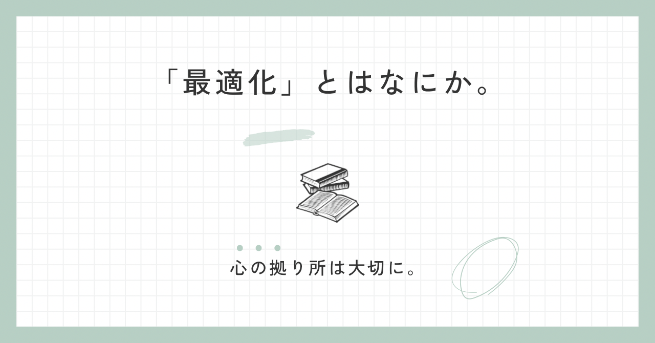 最適化とは、自分のパフォーマンスを最大化するための手段である。